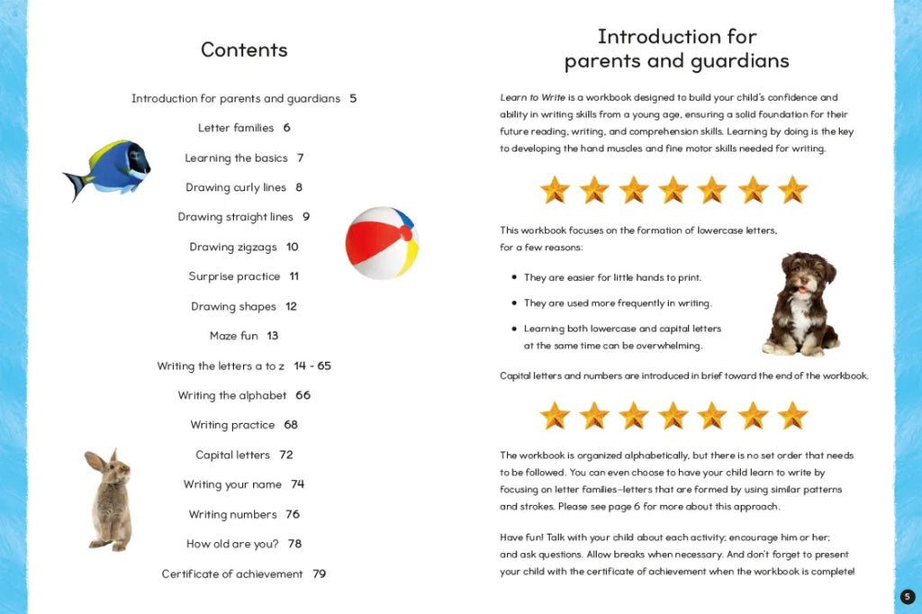 Learn to Write is filled with activities to practice pencil control, line tracing, letter formation, and more, providing the perfect foundation for a lifetime of writing.