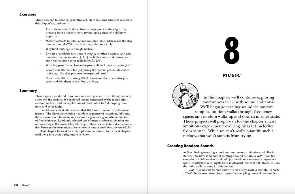 Scientific anecdotes and code examples throughout illustrate how randomness plays into areas like optimization, machine learning, and audio signals. End-of-chapter exercises encourage further exploration.