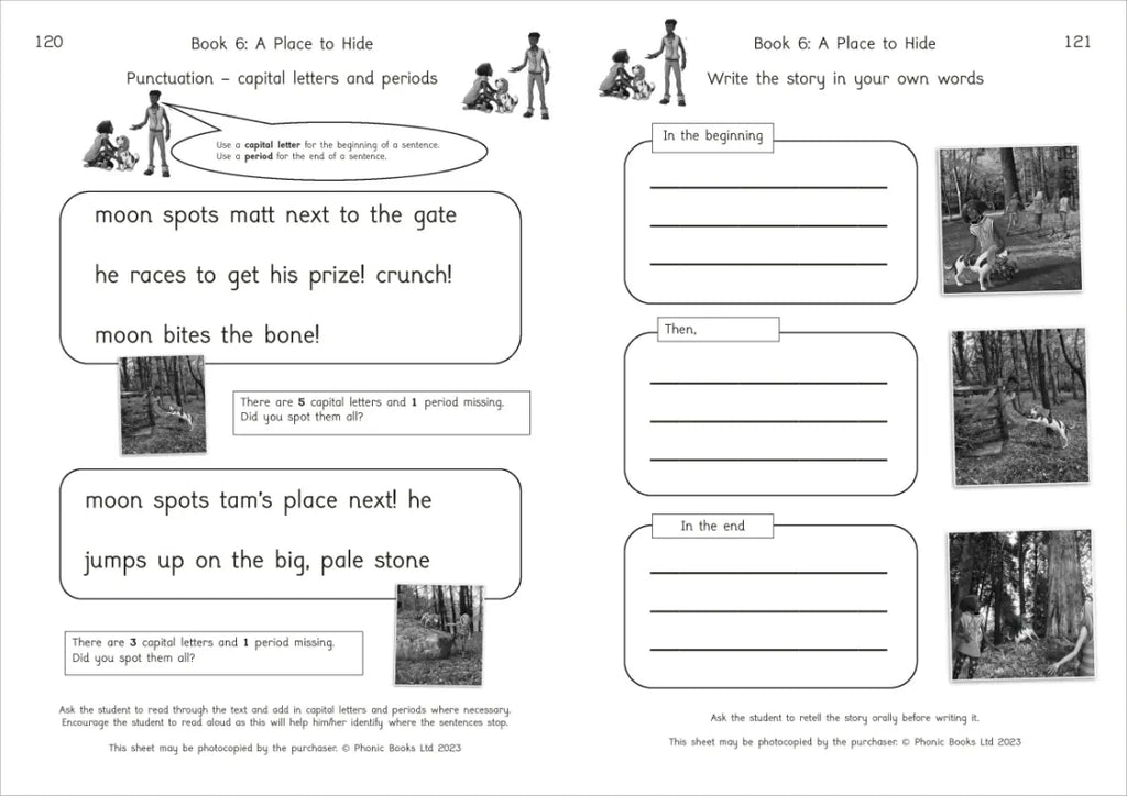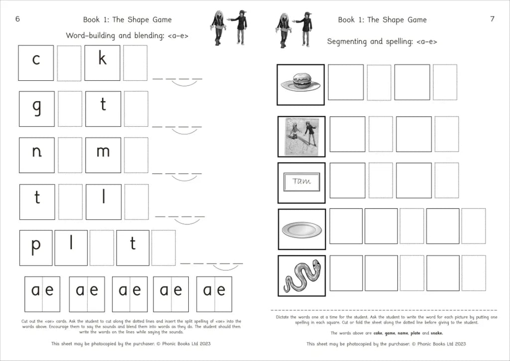 Photocopiable activities to accompany the set of six books in Phonic Books Moon Dogs VCe Spellings, decodable phonics books for structured literacy intervention with older readers. This activity book includes activities for word building, reading, spelling, and comprehension linked to the Moon Dogs VCe Spellings books.