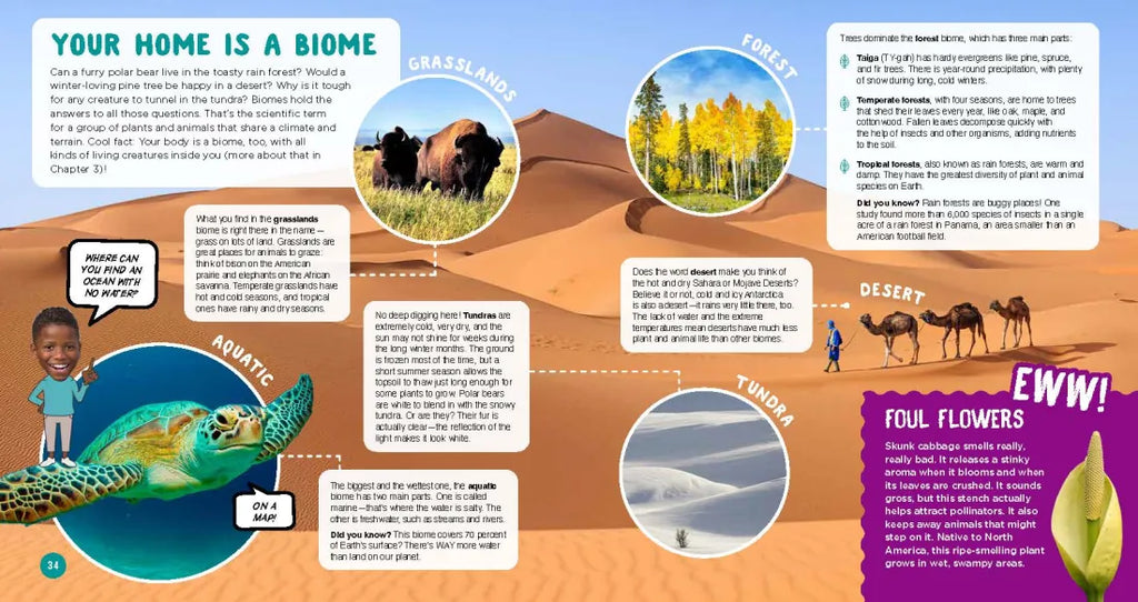 - Investigate our natural world and find out if there are more trees or stars, how a coral reef grows from a tiny animal, and how freezing ice and fiery volcanoes are related.