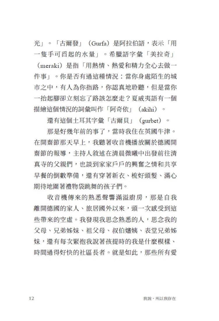 作者庫布拉是流利的多語者,她以土耳其語字詞表達的鄉愁無法完整複製到德語的經驗,精準地陳述了語言的限制和力量。除了以移民二代、多語者、伊斯蘭教信仰的多重標籤,即框架外的異己者視角來探討政治立場的形塑之外,她同時大量引用學術、實務與日常經驗來說明,人們在使用語言表達意見時會因語言限制而出現盲點,甚至因為忽略字詞的可能差異或是預設前提偏頗了論點。