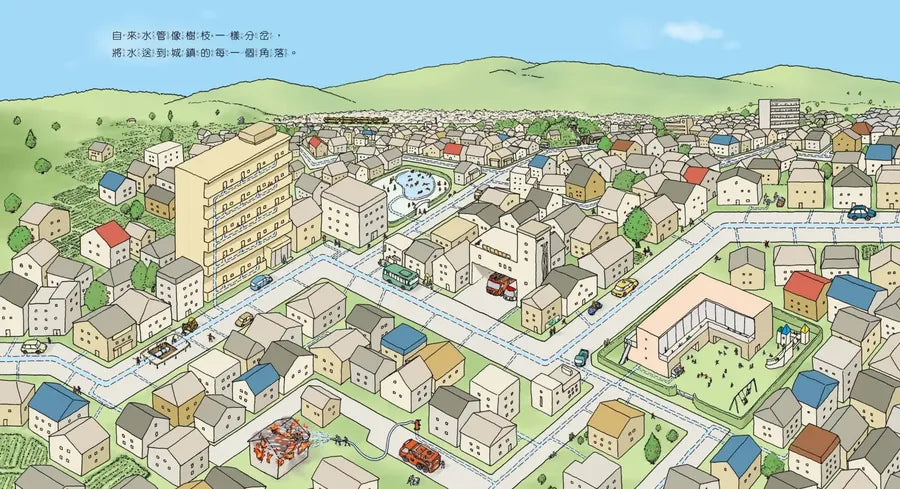 2.題材容易延伸:讀完書以後,家長也會想要帶著孩子一同體驗:觀察路上的工地現場、觀察水管、找一找家中的水表和總開關等等。