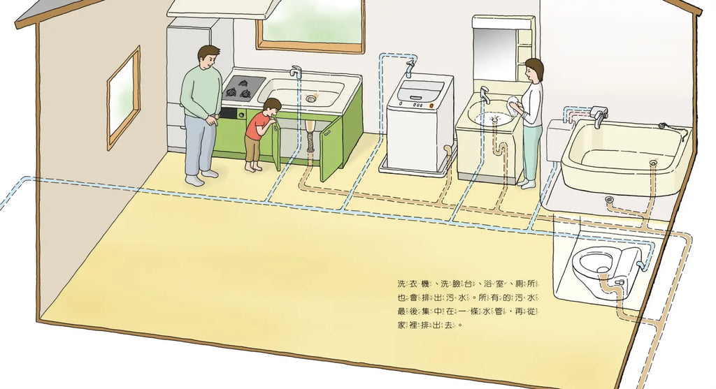 洗衣機、洗臉台、廁所裡的水從哪裡流進來?又排放到哪裡去呢?