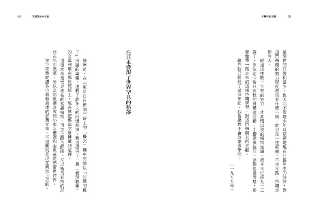 他能整理、發現了大量植物知識,最原始的動力,也不過僅僅是對植物的熱情和好奇。小學中輟之後,他雖一生未再接受正規教育,但靠著自學和大量蒐集植物標本積累知識,即使沒有學歷,仍以豐富知識打破學術象牙塔的藩籬,在東京大學的前身長期研究講學、發表許多論文,獲得世界級的學者地位。〈和植物殉情的男人〉、〈請感謝植物〉等文章,都在在顯示出他對植物毫無保留的喜愛。