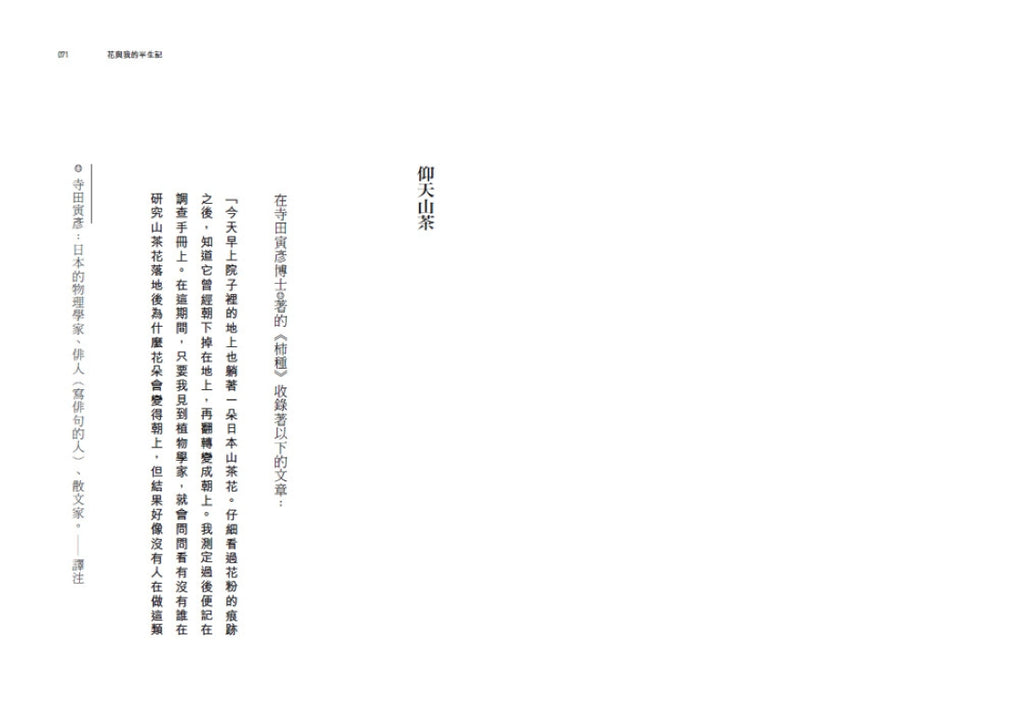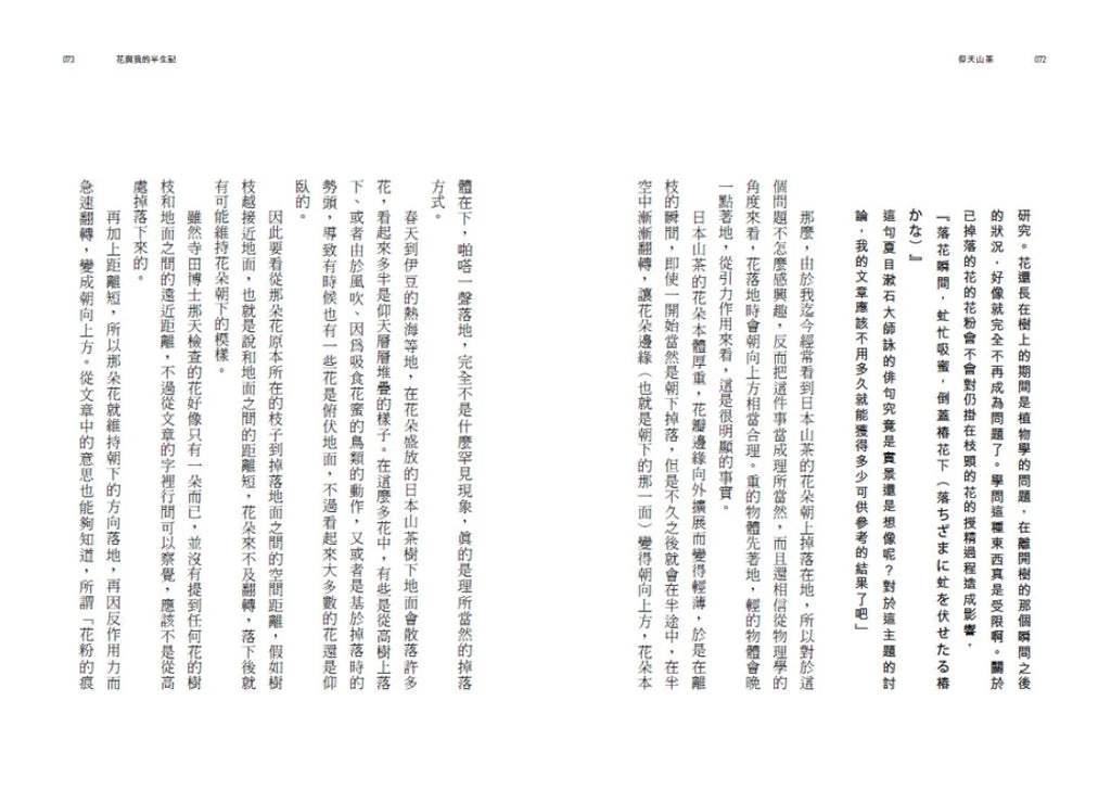 世上的植物何其多,套句牧野富太郎的話,「若沒有了植物,這世界會有多麼寂寞。」對於植物視而不見的人,以及能從中發現驚喜樂趣的人,就牧野的觀點而言,差別只在於是否願意仔細將眼光投注其上。