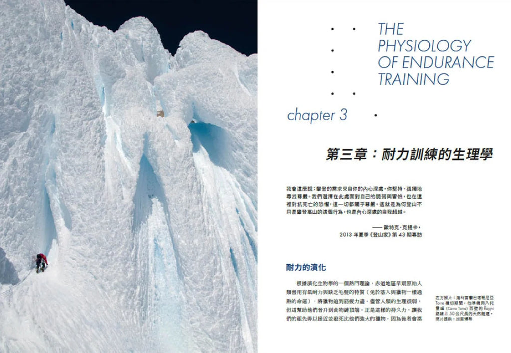 一切的訓練若不能在山中應用,都是空談。作者詳盡介紹高海拔適應的生理學,再以此說明如何安排適應期、每一天應該爬升多少、營養如何補給和心理素質如何培養等詳細項目,讓你的身體有最佳機會拿出最好表現。