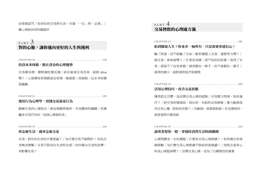 資訊爆炸時代,市面上不乏交易技巧的書籍、課程、文章,還有多如過江之鯽的交易資訊。但是,我們卻很少回過頭檢視自己,是否具備市場贏家所需要的心理彈性,以及自我覺察與管理的能力。