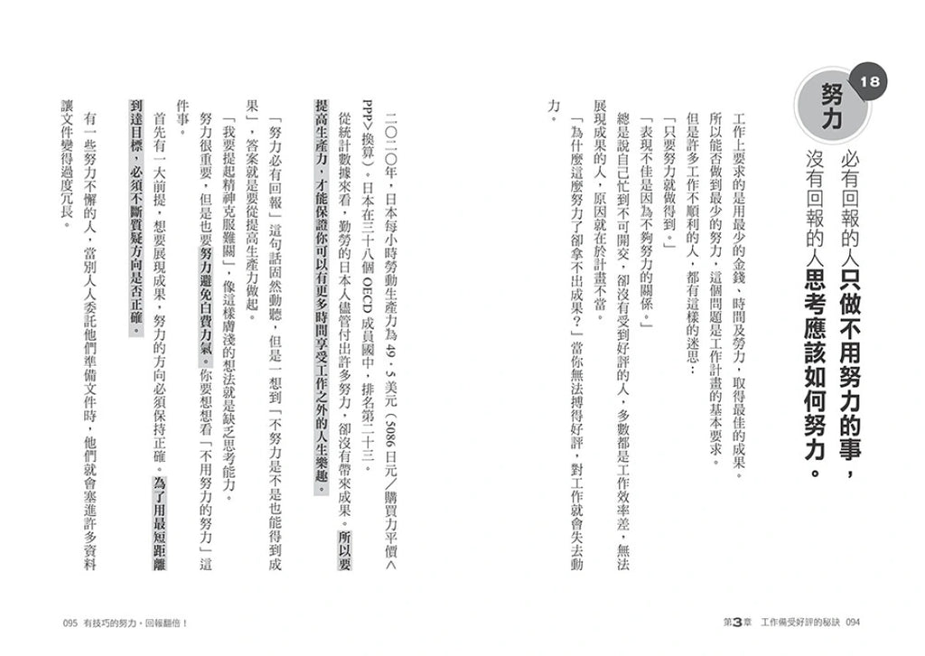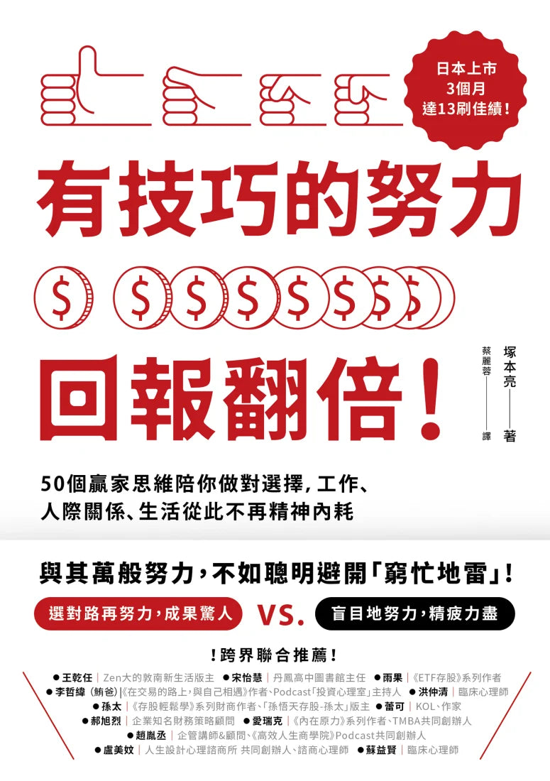 本書寫給慣性努力、過度努力,甚至不自覺為別人白白努力的你,作者從心理學角度分析「有效努力」和「無效努力」的差異,引導讀者選擇「如何努力最明智」的道路、技巧性避開窮忙地雷,讓每一分努力效益最大化,不再一無所獲!