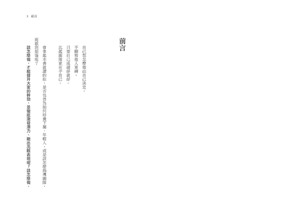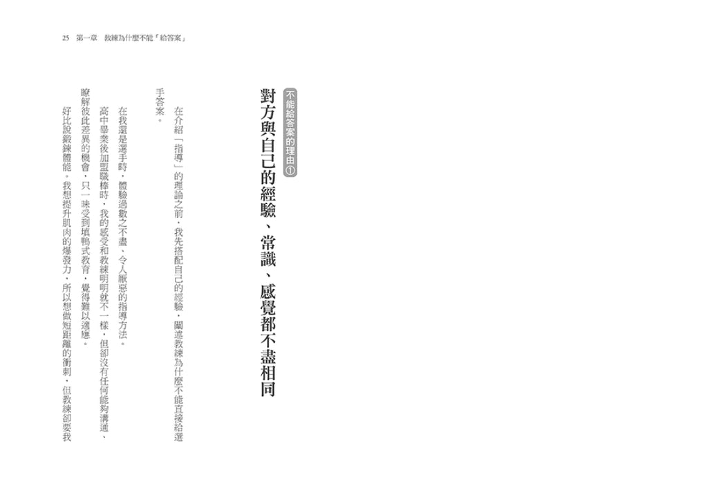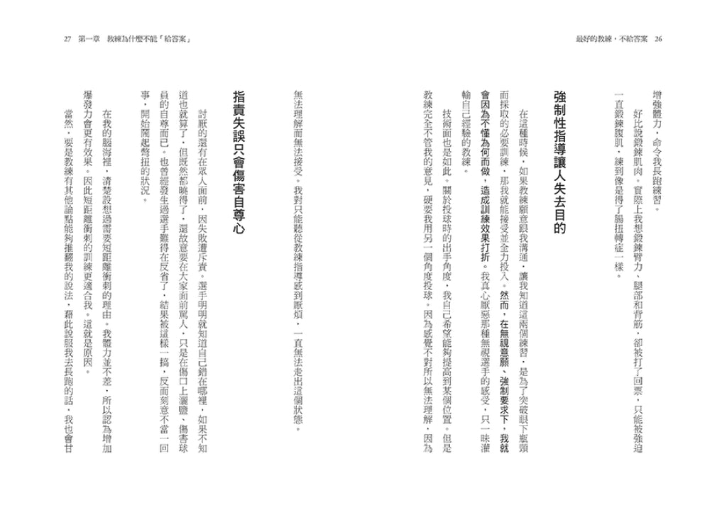 所謂的領導者,就如同球場上的教練,你的工作,在於讓選手們自發思考,設定課題,引導他們自身追求更高更強的能力。下屬們不該成為你,也不應該是你,唯有顛覆「領導=教育」的思維,才是邁向優秀領導的關鍵!