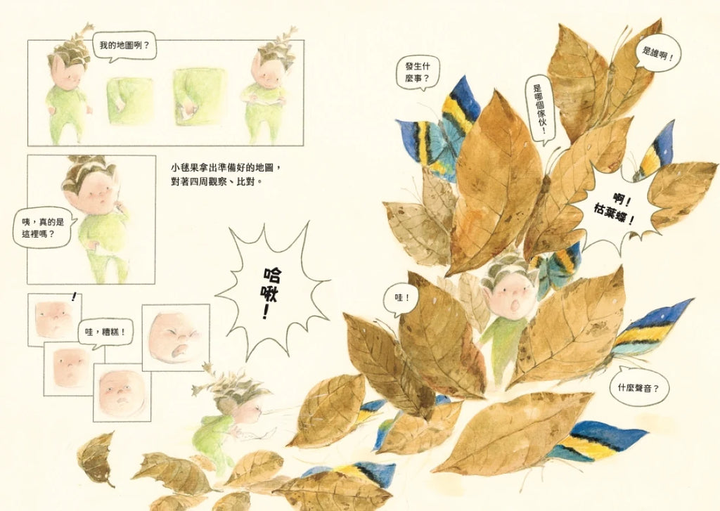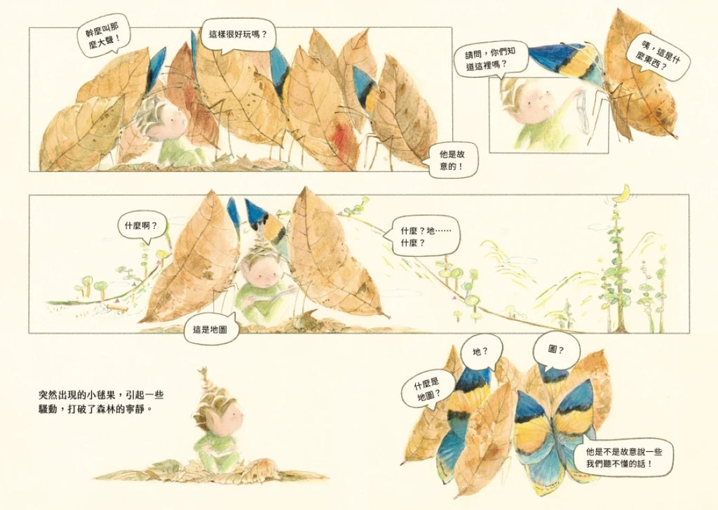 途中,他遇見了推大便的糞金龜、話很多的枯葉蝶,