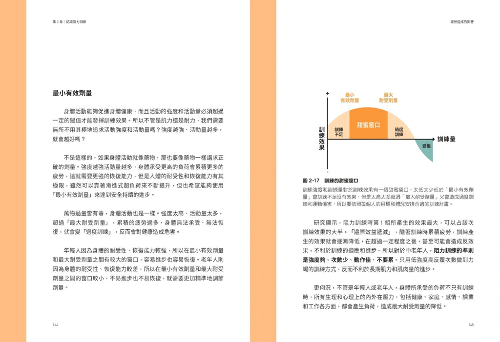 本書中,除了詳細解析能量代謝和肌肉生長的人體適應機制,也剖析各類有氧訓練、阻力訓練的效率、效果和效應(包含最受歡迎的高強度間歇訓練、第二區心率訓練和大重量訓練等等),也提供各種慢性疾病下如何訓練並藉由訓練改善病況的指引,以及中高齡乃至兒童等等各年齡層的訓練建議,全家大小各代都能一起精準練對練足,存滿一生用之不竭的健康資本。
