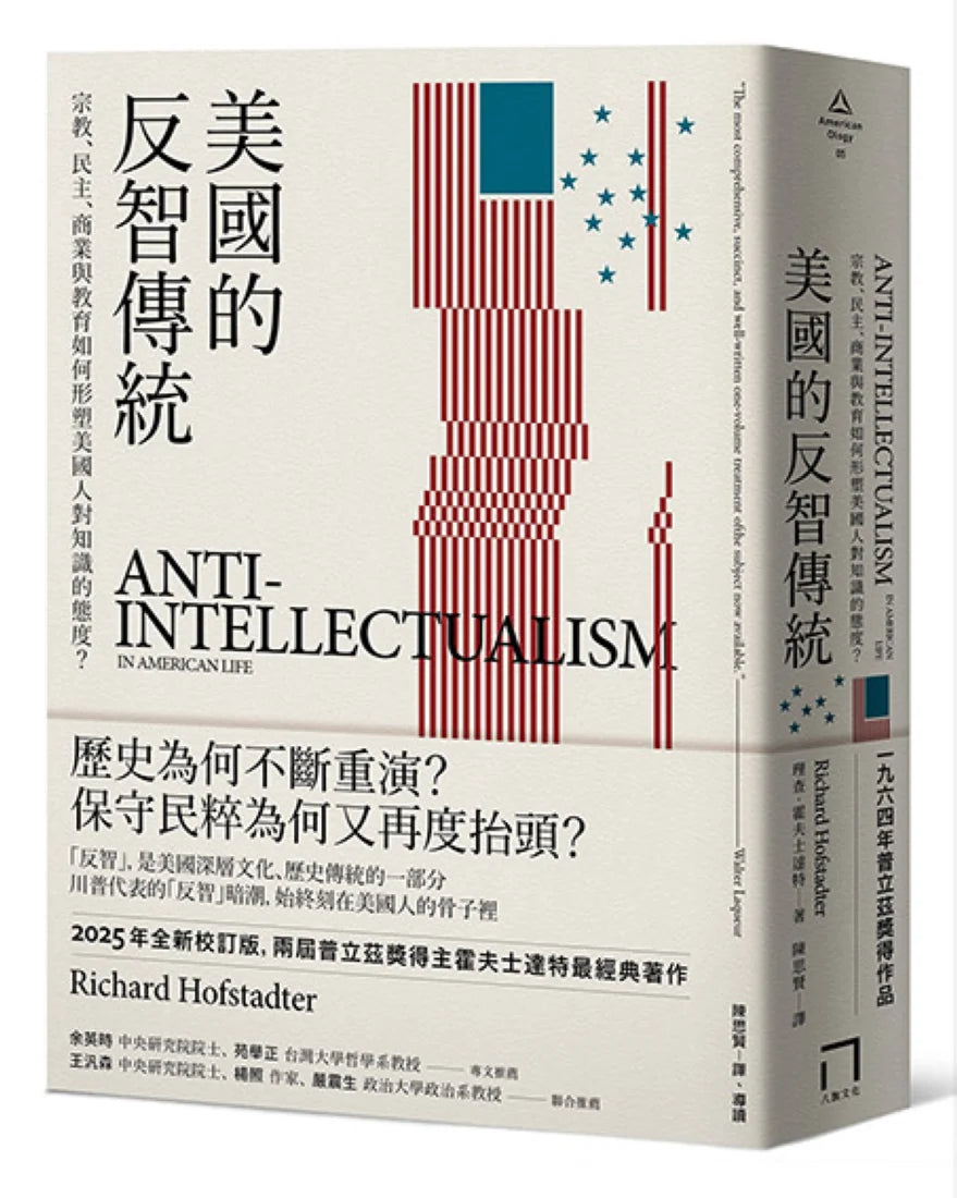 本書於1963年甫出版就造成轟動,接連獲得普立茲非小說類獎、愛默生獎與希爾曼獎等殊榮。在美國之外本書也掀起廣大迴響。當代華人史學泰斗余英時先生於1975年撰寫的〈反智論與中國傳統〉即是受到本書的啟發。在川普第二度上台的今天,讀者仍可從作者六十年前留下的文字中,體察到那超越時代、可為當代人引路的思想深度,以及作者認為,知識分子在當代社會應扮演的角色。