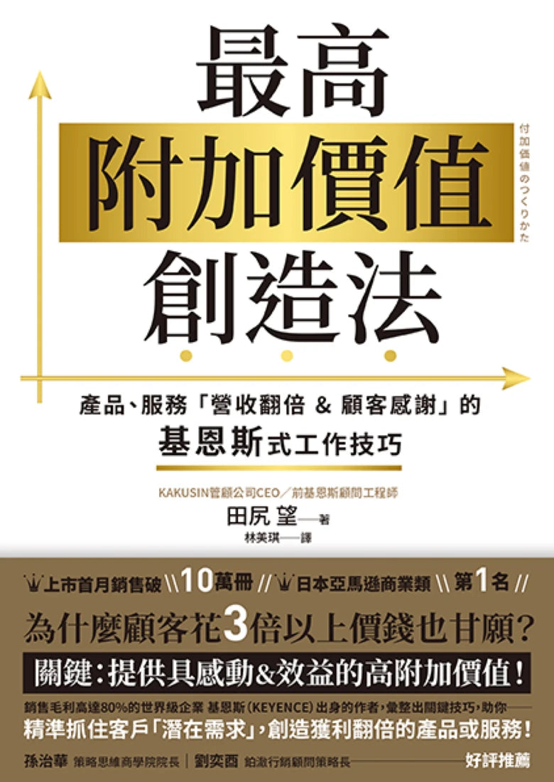 出身基恩斯的作者──田尻望,將其作法及獨立創業後的經驗,彙整成一般企業及個人都適用的技巧,助你迅速挖掘客戶潛在需求,為產品或服務創造最高利潤。