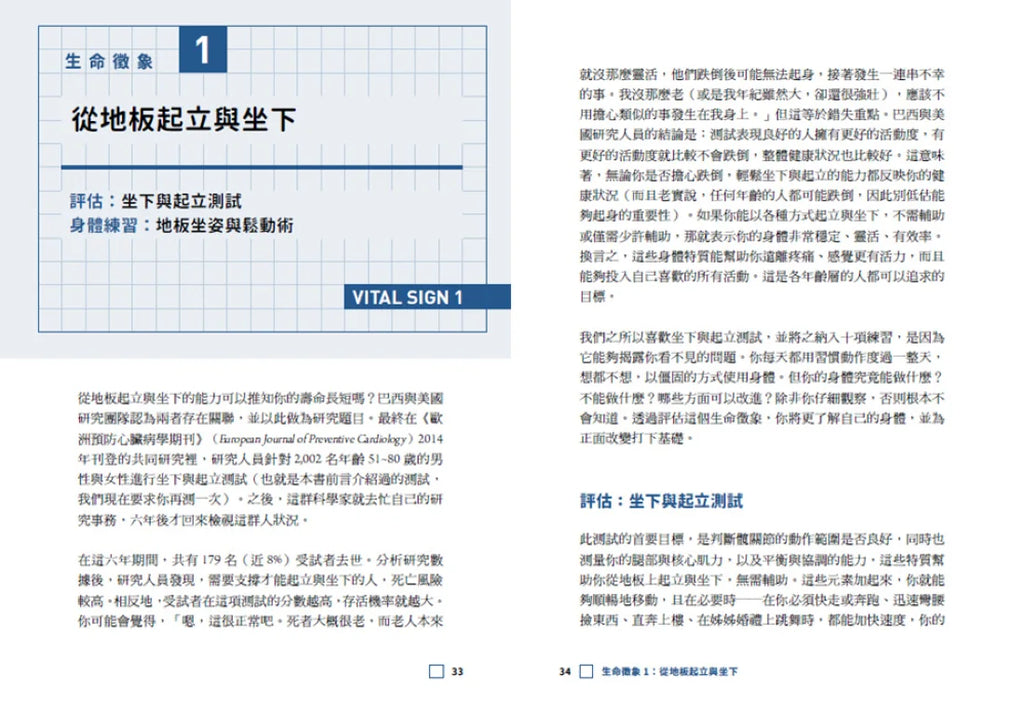 有運動習慣的人,仍可能是久坐人!每週運動三次很好,但只是保險,無法抵銷其餘時間久坐對身體的傷害!本書提出的十項「生命徵象」檢測環環相扣,讓你能掌握人體完整的機能。