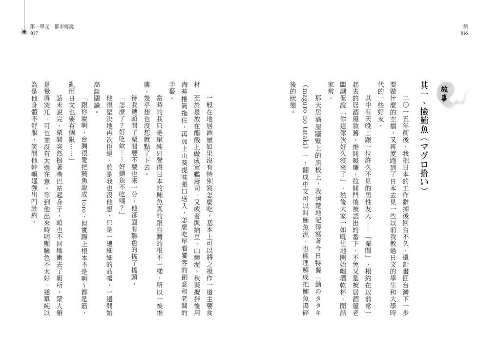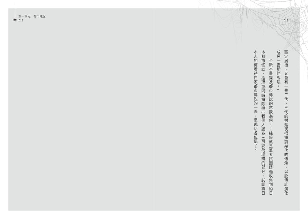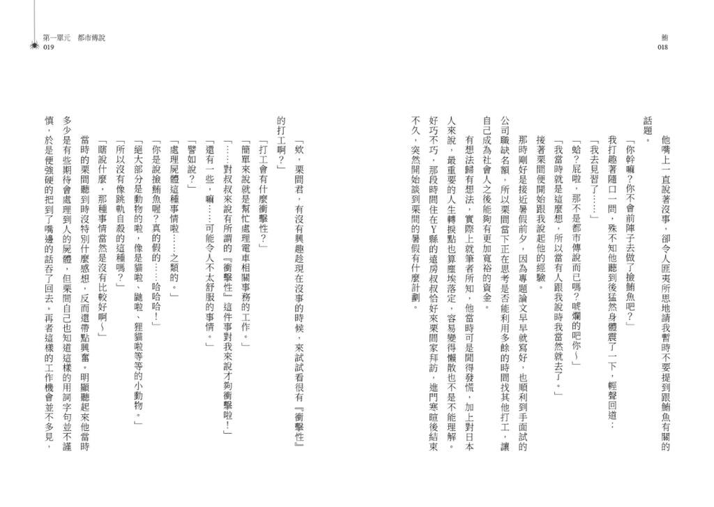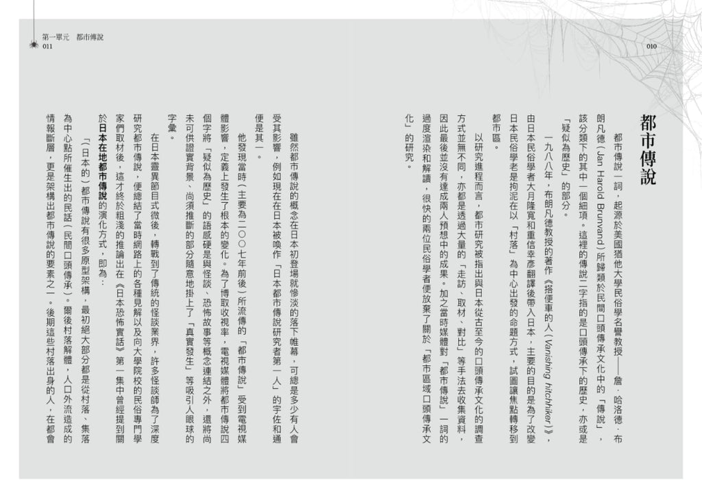 本書分為5大章,在日本各地流傳不同版本的【都市傳說】;