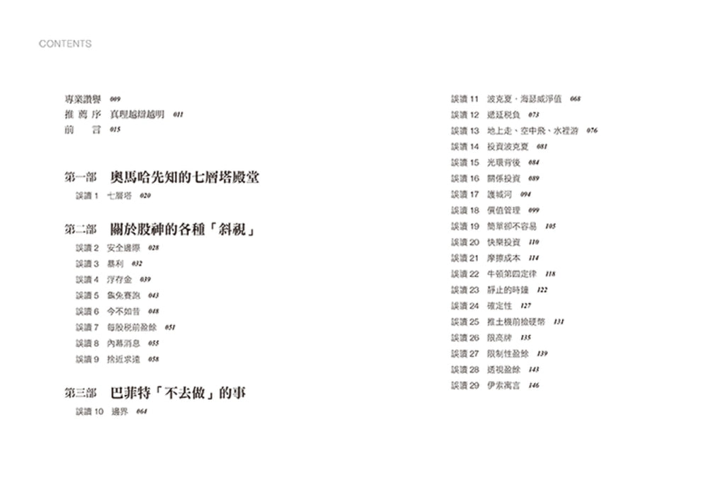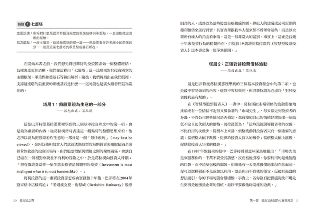 本書將巴菲特投資體系喻為「七層塔」,分成七大塔層剖析;
