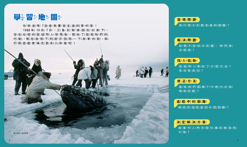 透過精美插圖與真實事件改編的故事,讓孩子初步了解事件的經過,引發孩子對問題的好奇心和思考解決問題的過程。