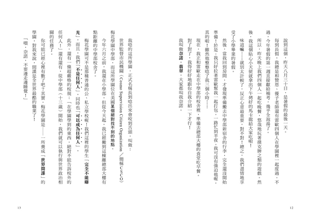 故事想要表達「如果我成了世界祕密機構的間諜,會執行什麼樣的任務呢?」。你覺得呢?小說非常讓人期待。──黃愛真‧教育部閱讀推手