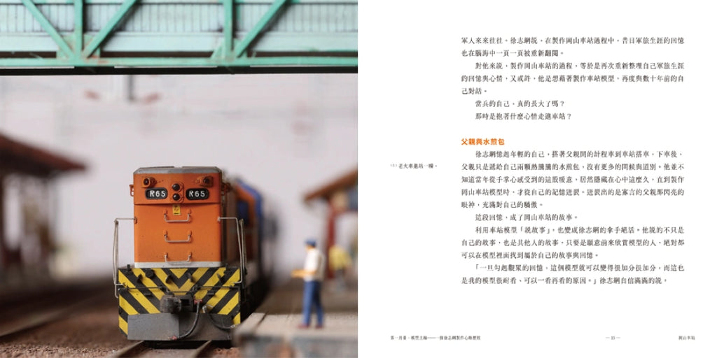 在這本書裡,鐵道不只是鐵軌與火車,而是你我心中的記憶地圖。模型創作者徐志綱,用雙手與心,重現臺灣一座座已消失或正在遠去的老車站、平交道與號誌樓。每一個微縮場景,都是對青春、土地與時代的深情回望。