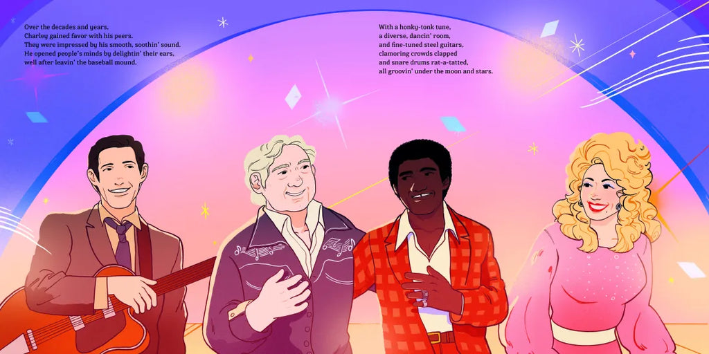 Charley Pride was born with a honky-tonk mission: to bring all types of folks together through music! A multitalented singer, he played baseball in the Negro Leagues before exploding onto the country music scene. In the face of racism and segregation, he united diverse crowds throughout the 1960s and 70s and later became the first Black performer inducted into the Country Music Hall of Fame.