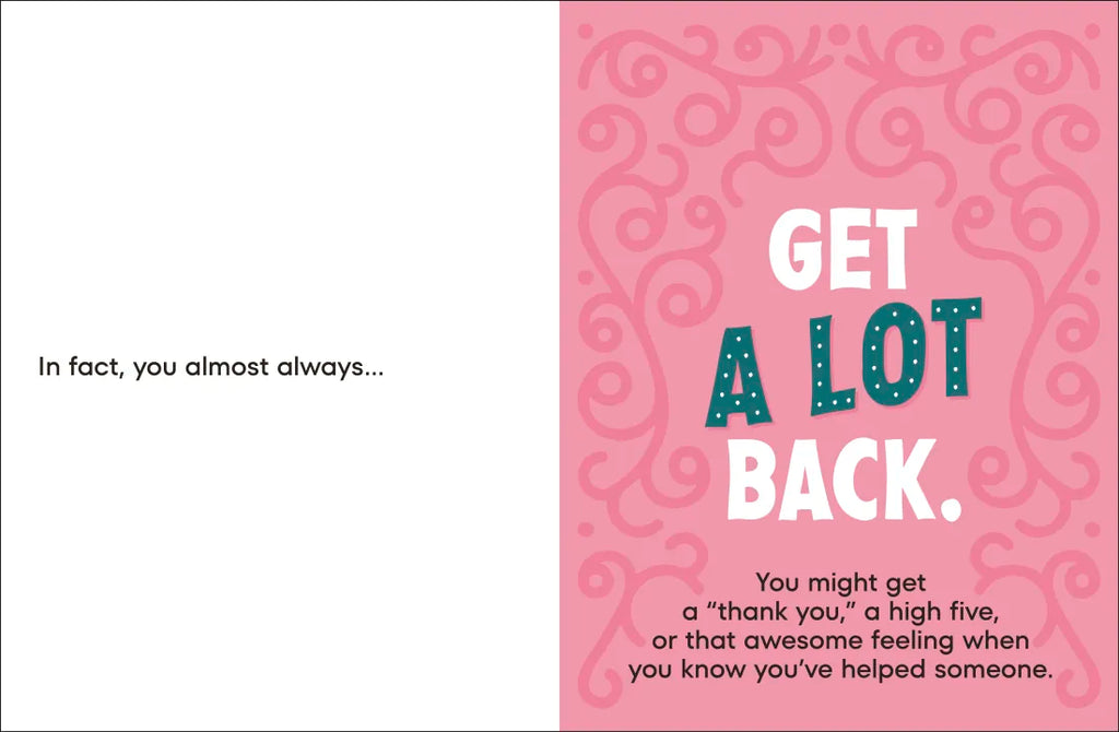 This book was made to help kids aged 5-9 understand what giving entails in all its forms. You can give your time, your energy, your heart, a smile. And when we give with authenticity and joy, the world is a better, brighter place.