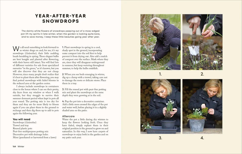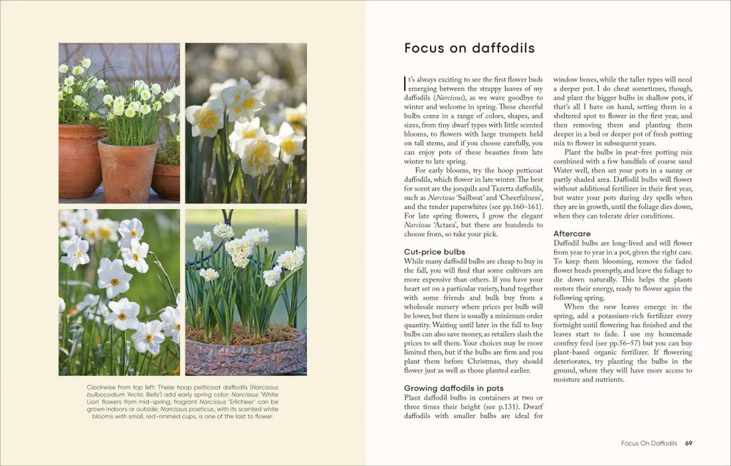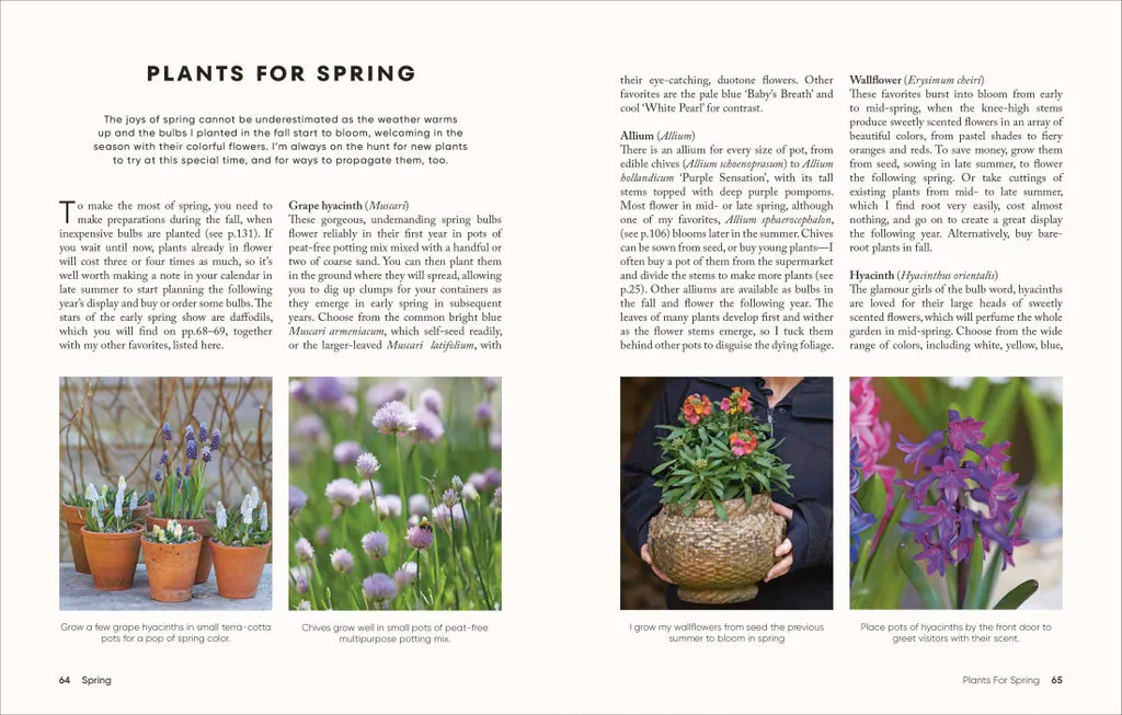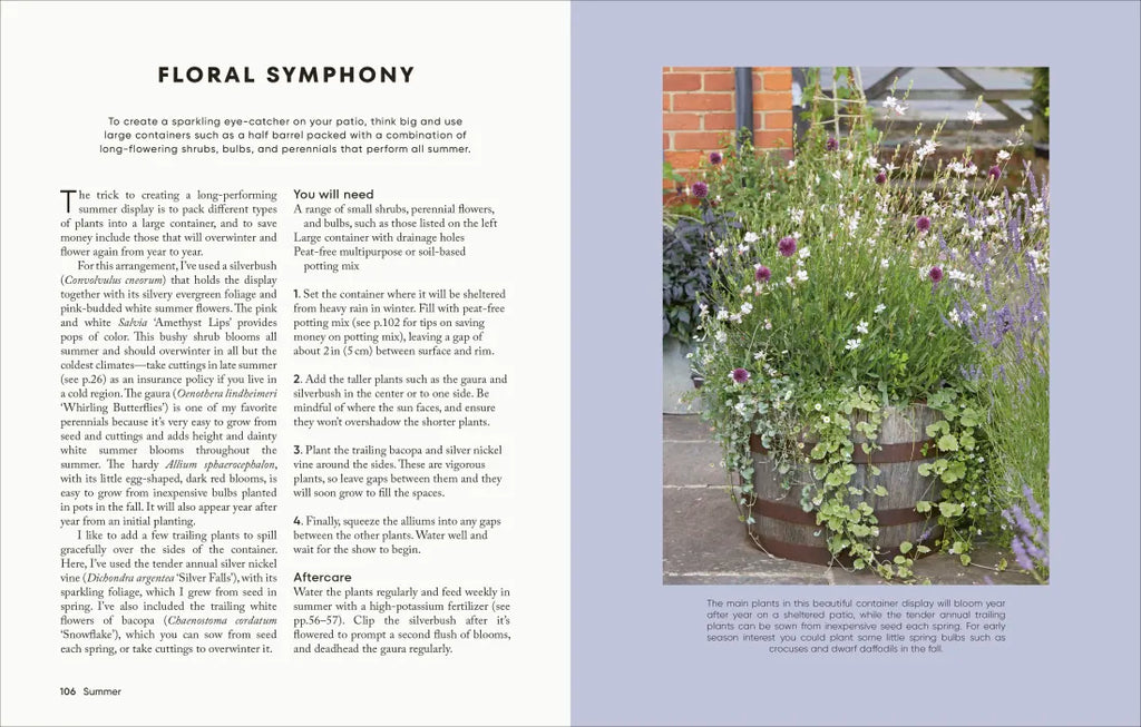 With arrangements for spring, summer, fall, and winter, there are projects for you to create in your own garden for color and interest every month of the year—from spring bulbs to brighten your day to charming paperwhites that make a meaningful and beautiful gift in the darker months.