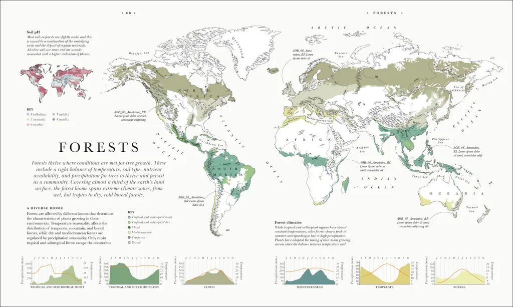 Plants have populated almost every part of Earth’s land surface – from tropical zones to cracks in city sidewalks – and have fundamentally shaped Earth's natural regions. Mapping the changing conditions and continents of the ancient world and the biomes of the modern one, Atlas of Botany explores how plants have overcome the challenges of survival, and how they have interacted with pollinators and people along the way.