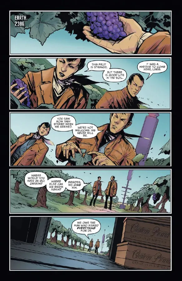 Then, following the climactic events of season two’s finale, Jean-Luc and Seven of Nine launch an unsanctioned mission that sets the stage for season three! When an offer comes in from the stars, Picard is once more compelled to leave his chateau and confront the shadows of his past. Before his days on the Enterprise, a young Picard and his crew aboard the U.S.S. Stargazer saved a thriving planet from resource-hungry Romulans…or so he thought. Now landing on a seemingly unrecognizable planet, he and his crew work to save the system—and their ship—from disaster.
