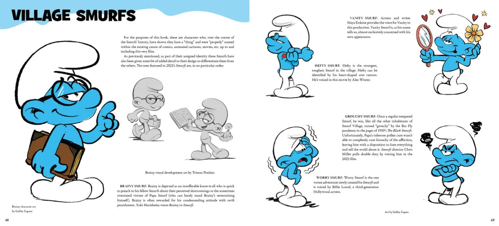 Dive into the creative process behind the film with never-before-seen concept art, character designs, and breathtaking environments. Reconnect with iconic favorites like Smurfette, Papa Smurf, Grouchy, Gargamel, and Azrael—and meet a few brand-new faces along the way! Explore classic locations like Smurf Village and Gargamel’s lair, plus discover exciting new corners of the Smurf universe.