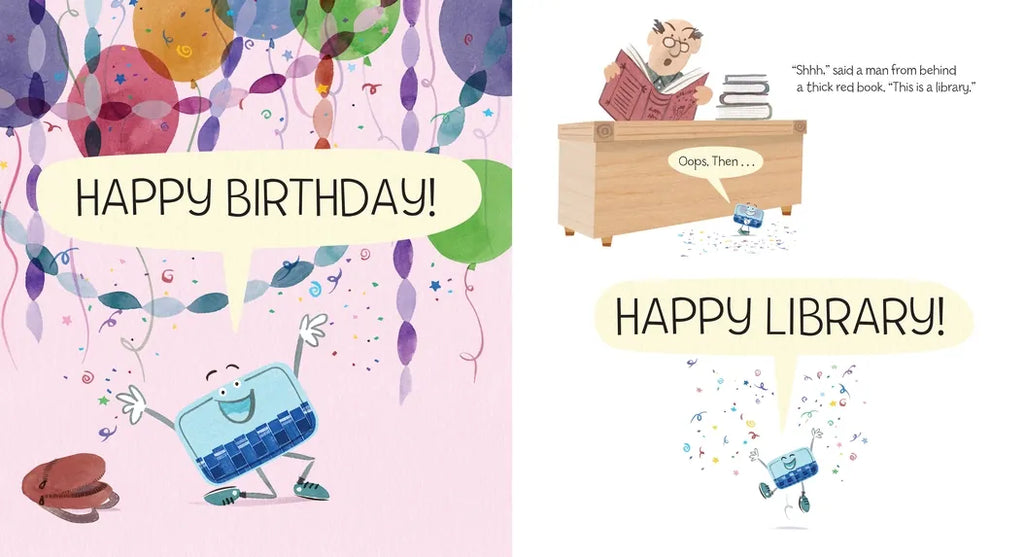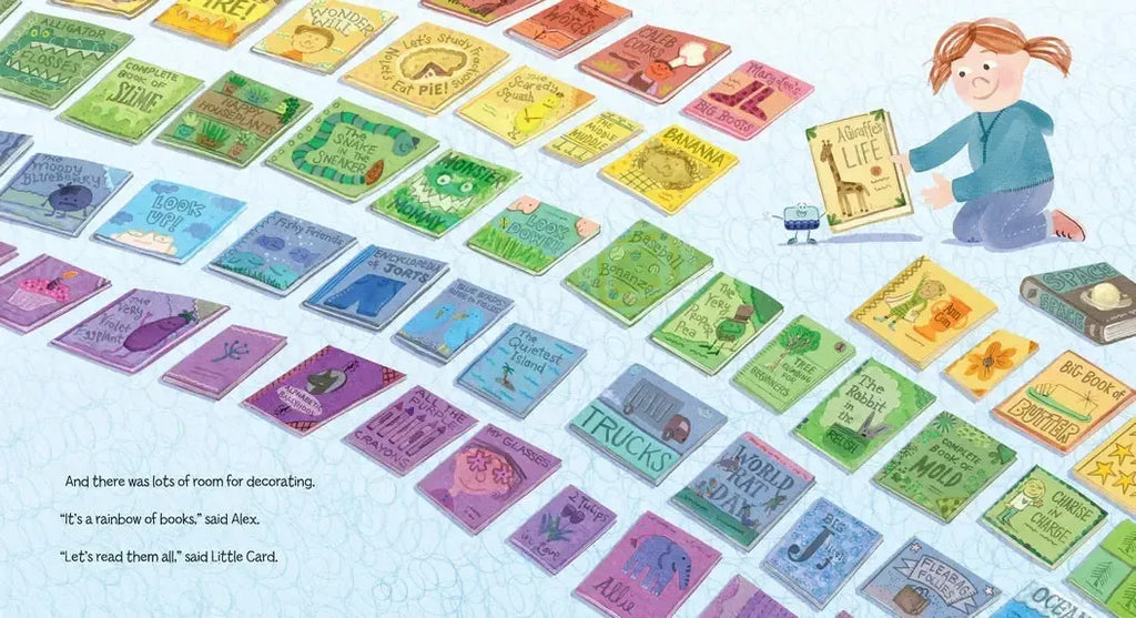 Every card has a special job to do. Long Card eats lots of cake and sings lots of songs as a ... birthday card! Wide Card travels all round the world as a ... postcard! But what will Little Card's job be? Here's a clue... There's a very special place (full of books) that might just be perfect for a card his size... As long as he can whisper! Quirky and adorable, this tale of a little card who gives it all he’s got is complete with an unexpected twist and a surprise, joyful ending.