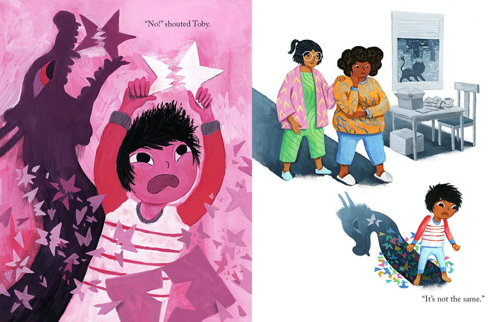 Moving from a rural house to an apartment in the city, Toby feels tiny and lost in the vast, crowded metropolis filled with unfamiliar sights and sounds. His moms try to comfort him, but their bedtime tradition of looking at the night sky together just makes Toby angry -- because the city lights hide his beloved stars.