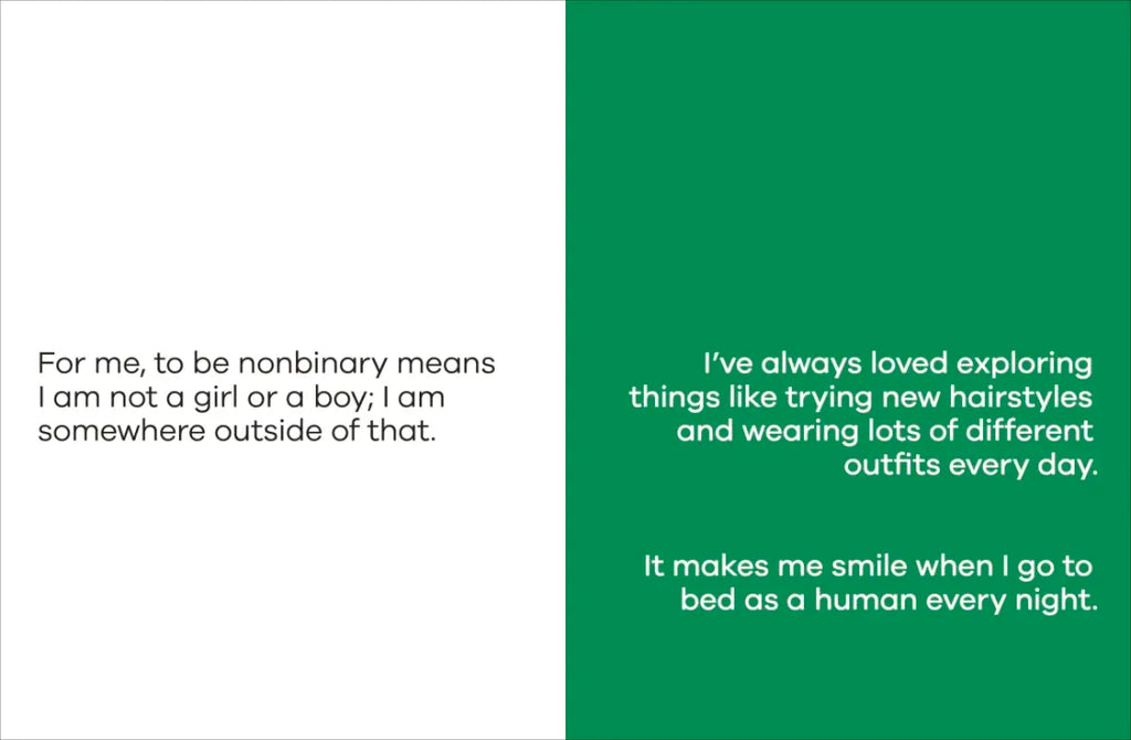 This is a kids book about non-binary identities. But what does being non-binary mean? For some people, the question and its answer may be new or a little confusing. It's okay to not know what it means! That's where all good conversations start. The journey to understanding starts with an open mind and an open heart.