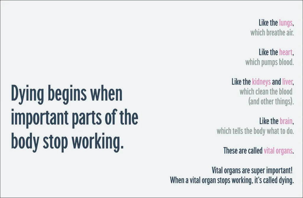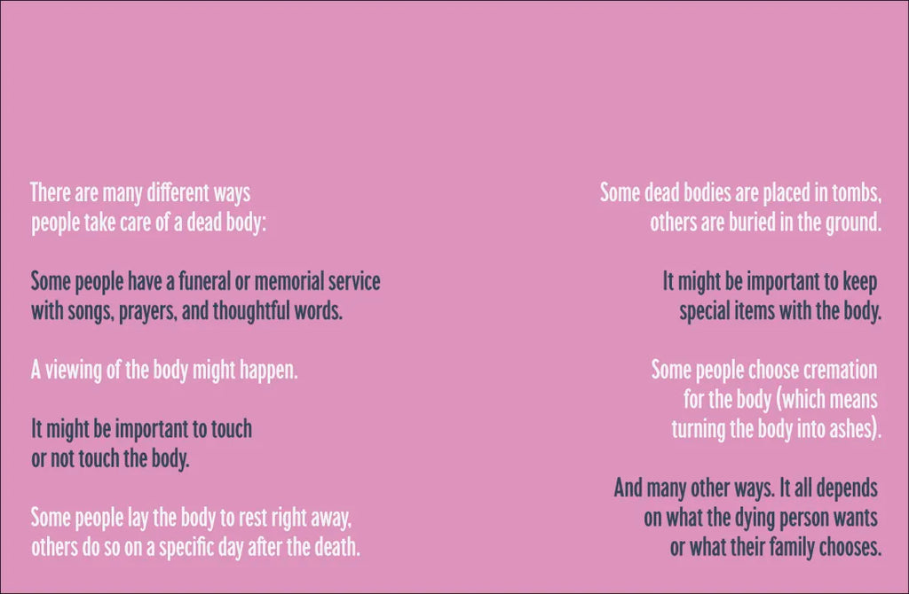 This book was made to help kids aged 5-9 understand what death is and how to process it when it occurs in their lives. The practical aspects are sensitively explained, and the book thoughtfully navigates the nuances of emotion and sense of community that surround something we all experience.