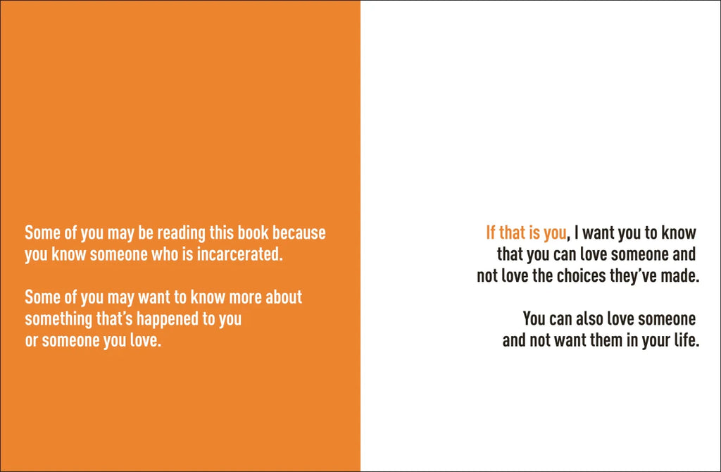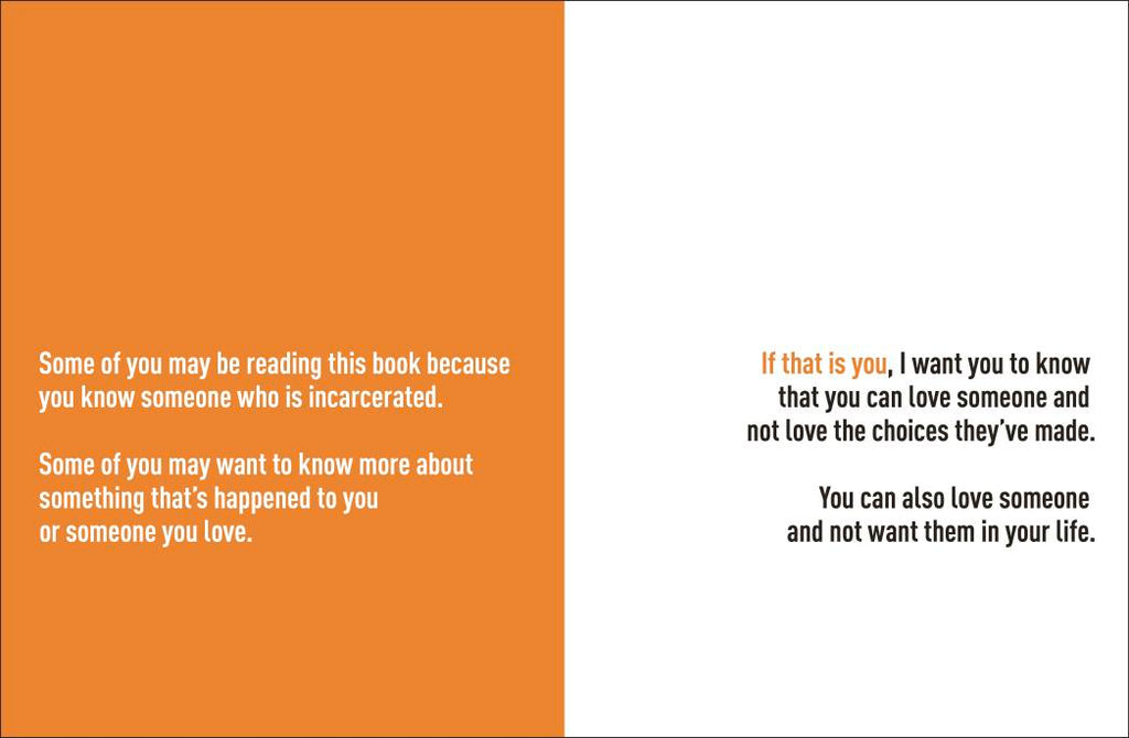 This book was made to help kids aged 5-9 understand what incarceration means. It explores crimes, and prison, as well as the power of choices. The author's story highlights the impact of choices and how someone can grow, learn, and change the path they've been on.