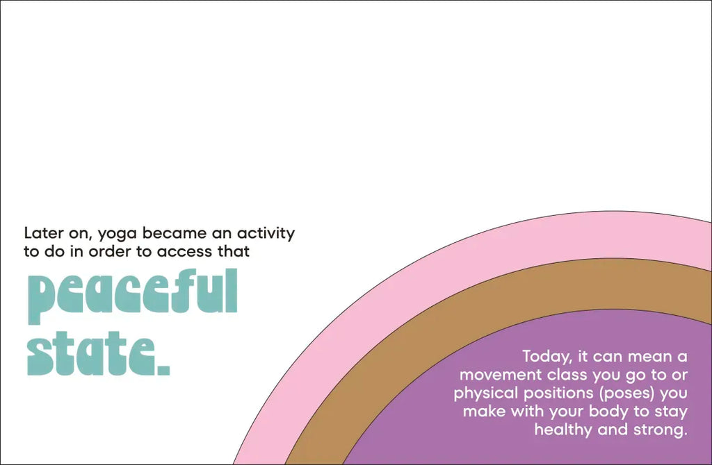 This is a kids’ book about yoga. The word "yoga" means to "join together." Yoga is how we connect things that were never meant to be apart. Yoga grows and changes with us.