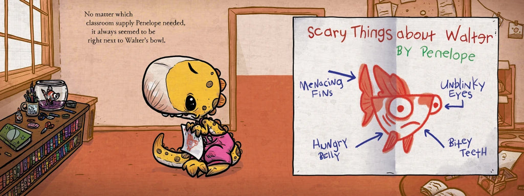 Penelope Rex has one fear: Walter, the class goldfish. So when Mrs. Noodleman tells the kids that they'll be taking turns bringing Walter home, Penelope gets carried away by her anxious imagination. The weekend has a rocky start—from Walter ominously licking his lips to a sleepless night where the fish's bowl appears to move closer and closer to Penelope's bed. But then Walter goes missing! Penelope must face her fear to find him and realizes along the way that there's more to Walter than his chomping jaws.