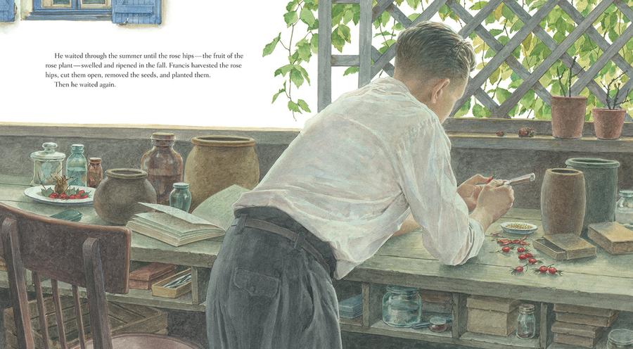 From a young man’s experiments in cross-pollination to the rose that became an international symbol of hope, this gentle picture book biography, beautifully illustrated by Bagram Ibatoulline, is a quiet epic of war and peace. Francis Meilland was passionate about roses. He loved their rich perfume, their buds unfurling in the summer sun, and their petals, soft as lambs’ ears. Like his father and grandfather before him, Francis cultivated flowers on the family farm in France. In his teens, he set about grafting and experimenting, determined to create a rose no one had seen before, and as the world braced for World War II, he rushed cuttings to rose-growing friends around the globe. Ten patient years later, word reached him: his rose had not only flourished; people were calling it the Peace Rose. An ideal gift for science and history buffs and for gardeners of all ages, this life story of a special flower is also a love song to living a dream from beginning to end, through sun and through storm.