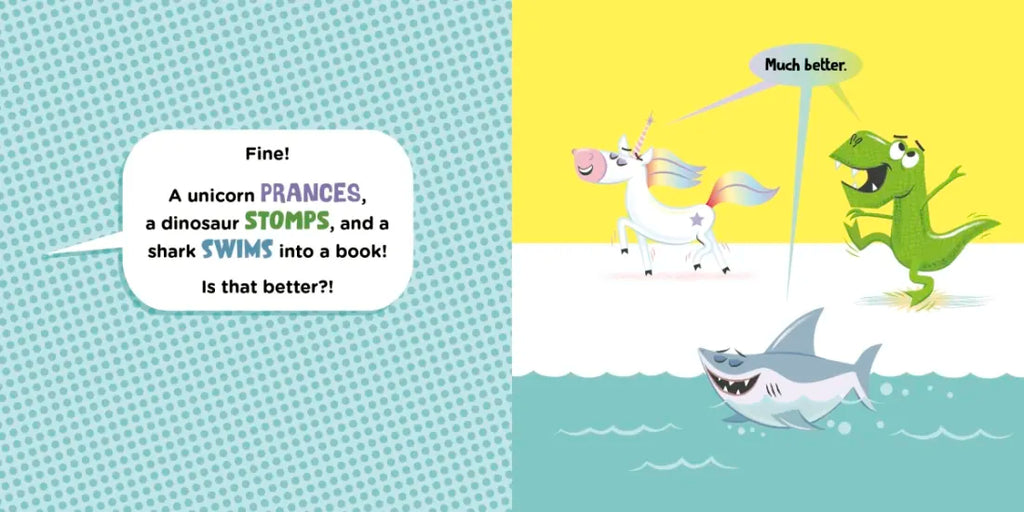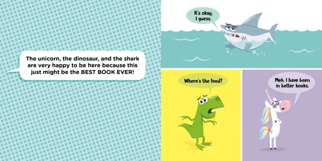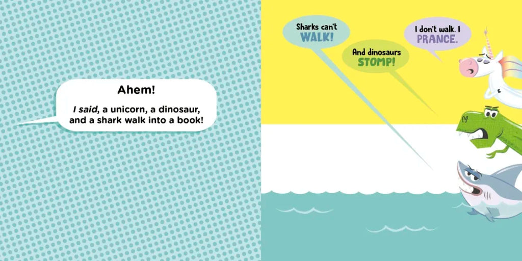From the comedic mind of Jonathan Fenske, Theodor Seuss Geisel Honor-winning creator of A Pig, a Fox, and a Box, comes a hilarious picture book about what happens when a unicorn, a dinosaur, and a shark "walk" into a book. Fenske's appealing illustration style and clever text make this intriguing book a must-have for every young reader's shelf.