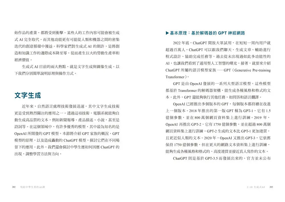 第ㄧ部分:認識「生成式AI」的原理,從中學習AI 的發展與技術。