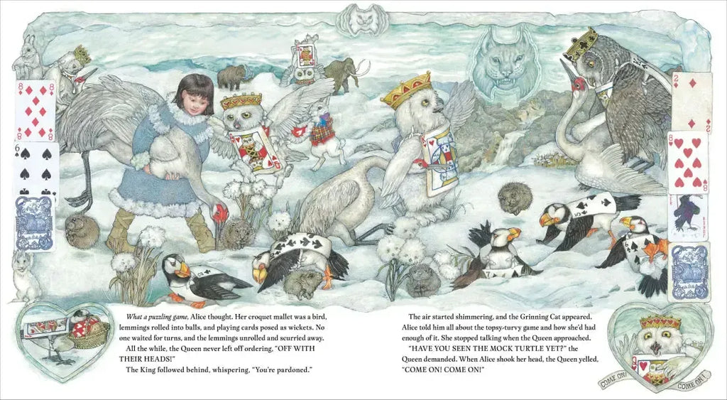 A striking rendition of Alice in Wonderland transported to a shimmering Alaskan tundra, in Jan Brett's rich signature style.