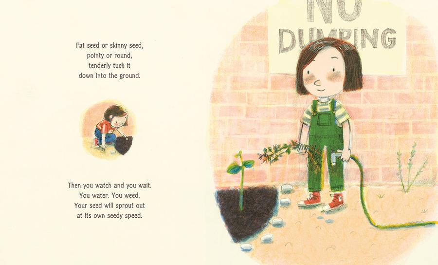 You might think a farm means fields, tractors, and a barnyard full of animals. But you can plant a farm anywhere you like! A box or a bucket, a boot or a pan — almost anything can be turned into a home for green, growing things. Windows, balconies, and front steps all make wonderful spots to start. Who knows what plants you may choose to grow and who will come to see your new garden? Phyllis Root delivers a modern rhyming mantra for anyone hoping to put their green thumbs to good use, while G. Brian Karas’s cheerful urban illustrations sprout from every page. After all, anywhere can be a farm — all it takes is one small seed and someone to plant it.