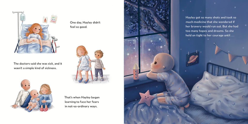 Like every child, Hayley has to learn to be brave in ordinary ways, like facing the first day of school or trying a new sport. But when Hayley gets sick—really sick—she has to learn to be brave in not-so-ordinary ways. When Hayley is invited to become an astronaut and travel to outer space, she knows she is up for the challenge. But she'll need all her courage to handle what's in store!