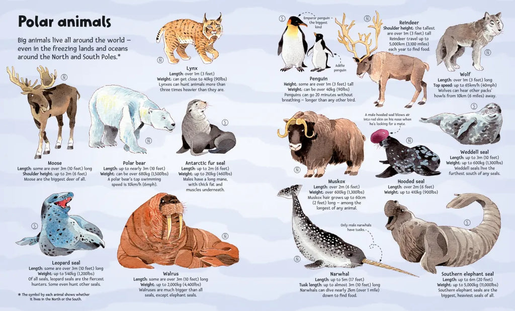 A fabulous book filled with enormous animals, from the mighty elephant to the amazing colossal squid and the blue whale. Huge fold-out pages reveal some of the tallest, longest, fastest, heaviest and most dangerous animals in the world, with facts and measurements. Includes internet links to websites with video clips and more amazing information.
