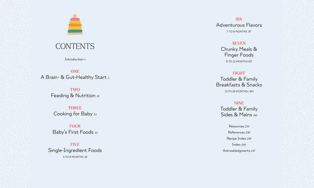 - 125 nutrient-dense recipes: Easy and tasty recipes that follow your baby's growth, from bone broth and single-ingredient purees to toddler snacks and family meals everyone can enjoy