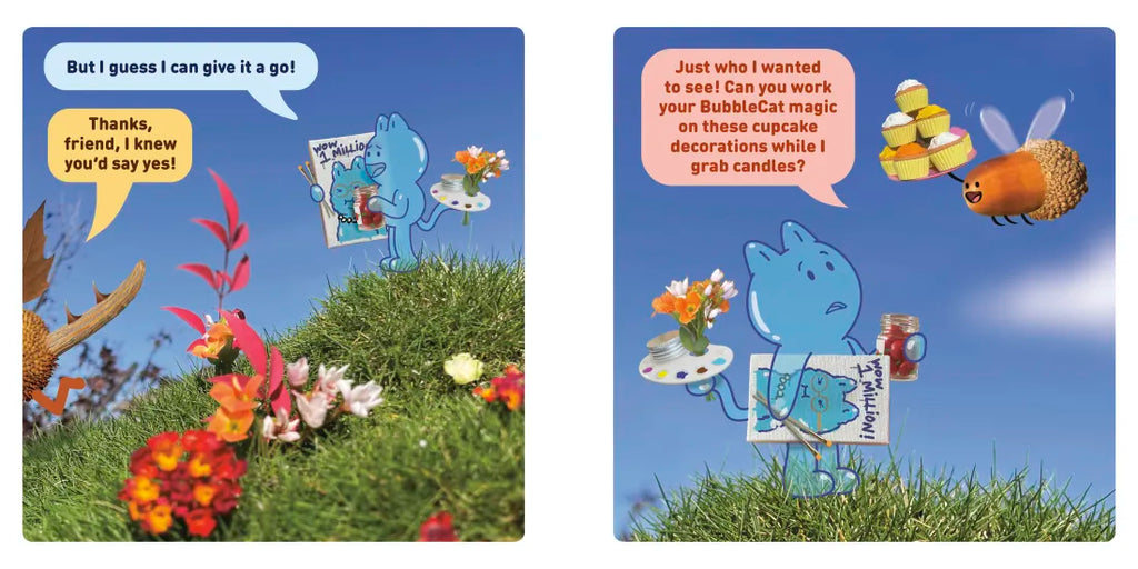 It's Nana's one-millionth Not Poppin' Day, and BubbleCat is excited to gift her a beautiful bouquet of flowers at her party. But every time he tries to pick her more flowers, one of his friends needs his help to finish their own gifts. Oh, bubbles! Can BubbleCat balance helping his friends with helping himself, or will he have to tell them…"no"?