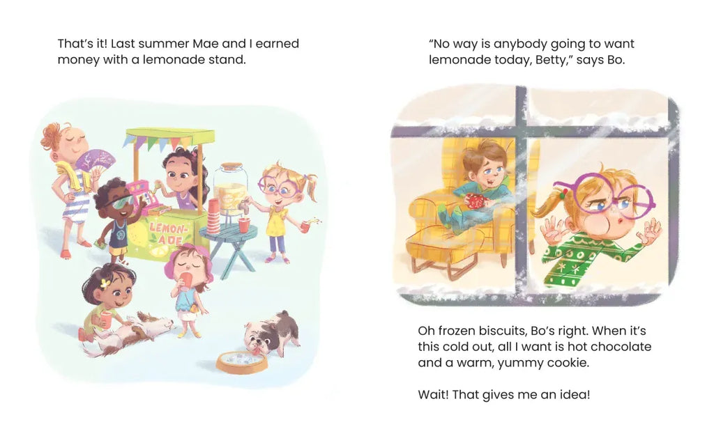 This year, Betty is going to get everyone in her whole family the perfect Christmas present. But when Betty looks in her piggy bank, she doesn’t even have two coins to clank together! Then Betty has the most amazing idea: she and Mae will transform their lemonade stand into . . . a Christmas cookie stand!