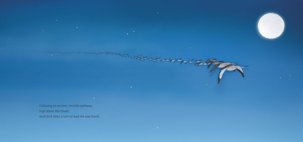 From the creator of the critically acclaimed Where the Forest Meets the Sea and Mirror, comes a poetic, eco-conscious picture book which explores the complex, interdependency of nature. This is the story of the little-known Bar-tailed Godwit who, following invisible pathways that have been used for thousands of years, undertakes the longest unbroken migration of any bird, a total of 11,000 kilometres, flying from their breeding grounds in Alaska across the Pacific Ocean to Australia or New Zealand. Facing hunger and treacherous conditions to reach their destination, their flight is one of bravery, tenacity and strength, and Jeannie’s stunning mixed media collages, inspired first-hand by the spectacular landscapes of Alaska and China, will amaze readers, and take them on an extraordinary visual journey to the corners of our Earth.