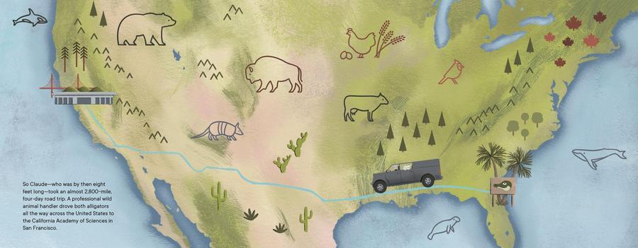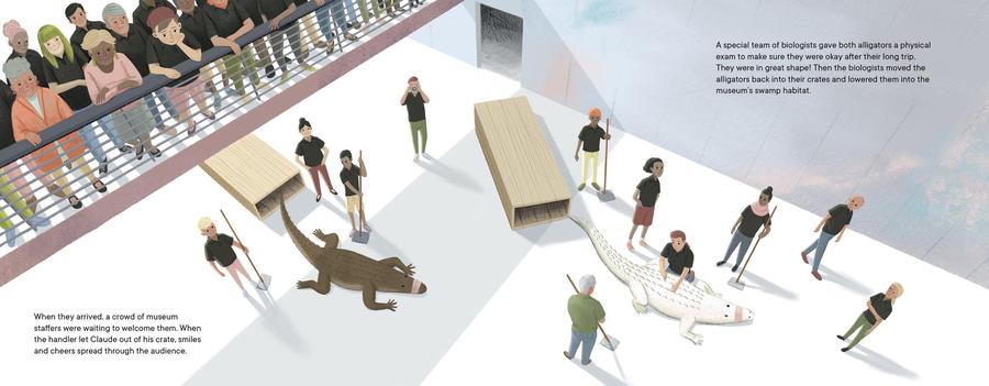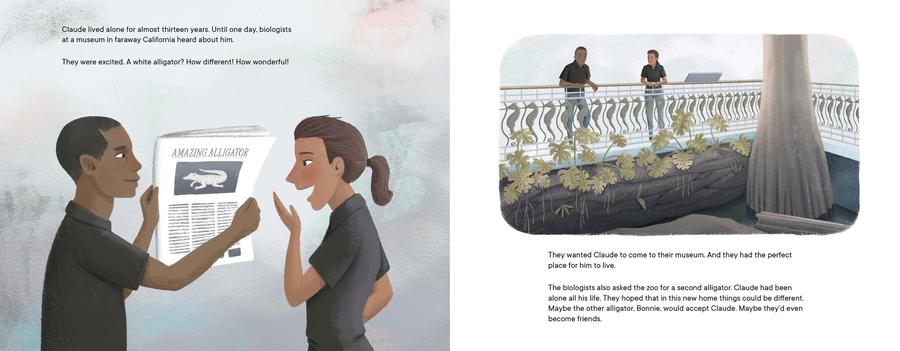 One day, scientists at the California Academy of Sciences heard about him and asked the zoo if he could come and live in the Academy's swamp. He made a 2,800 mile journey to his new home, where he had a surprise--he would share his swamp with Bonnie, an alligator who the scientists hoped would be a friend for Claude.