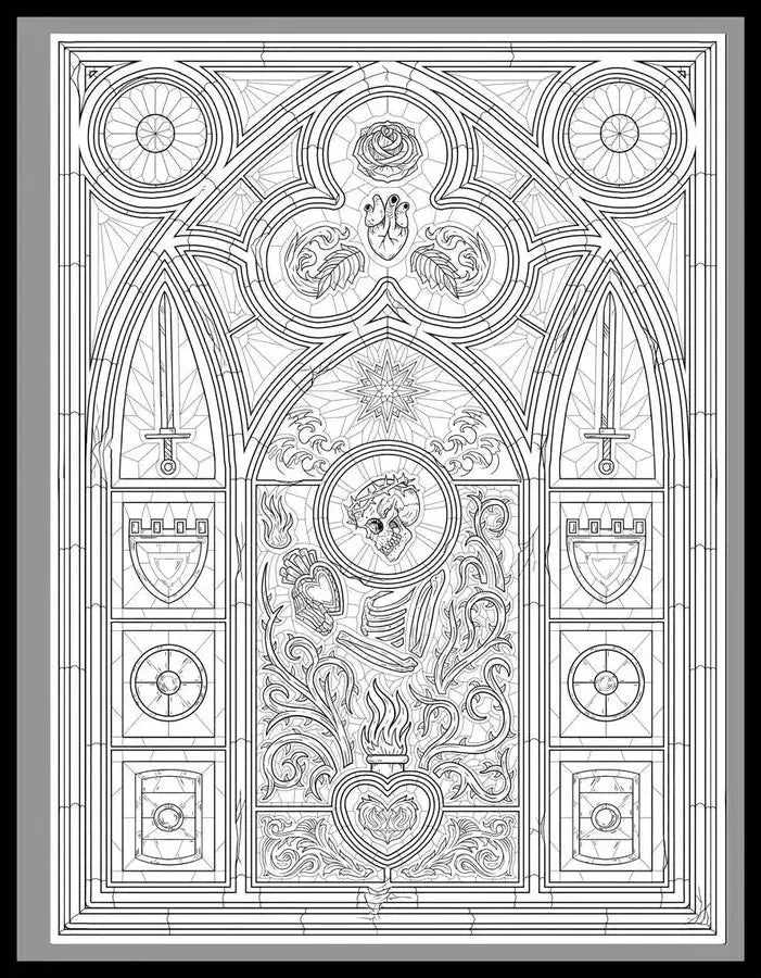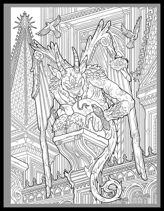 A horror coloring book sequel to Dark Art, featuring intricate and macabre gothic artwork by illustrator François Gautier