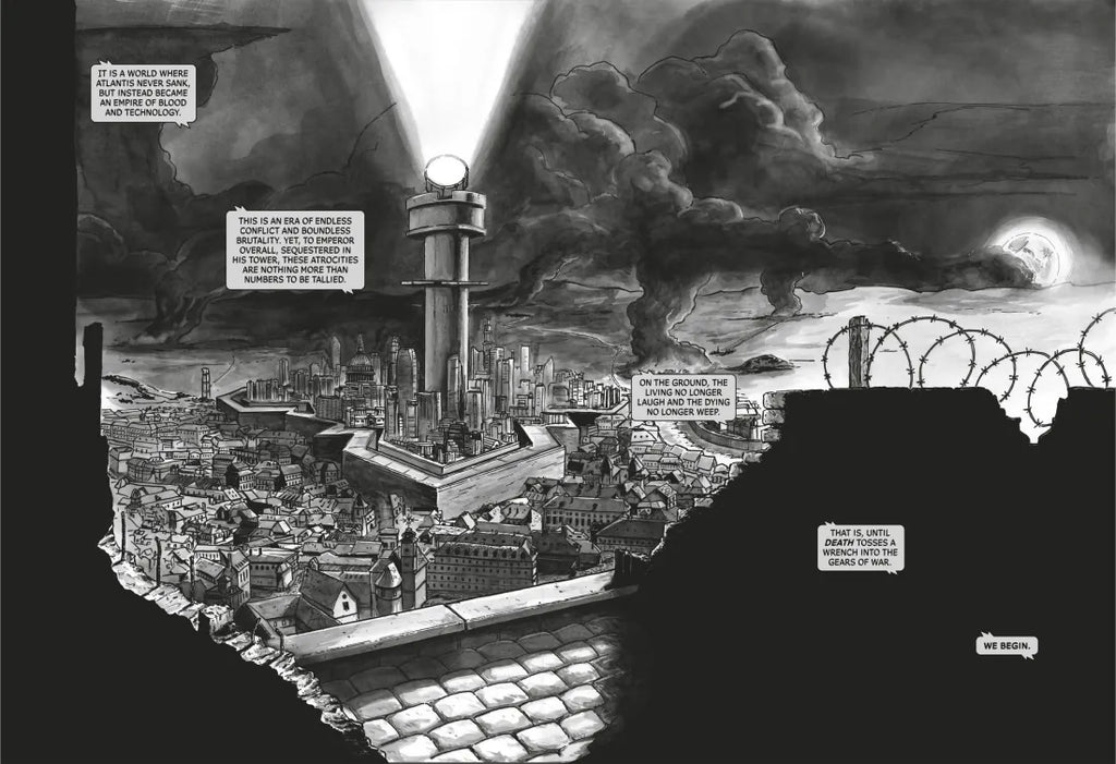 Set in an alternative universe where Atlantis never sank but instead became a technologically advanced tyranny, the power-mad buffoonish Emperor declares all-out war—everyone against everyone. Death goes on a labor strike, creating a hellscape where everyone fights, but no one dies. Can the spirit of Life stop this terror with the power of love?